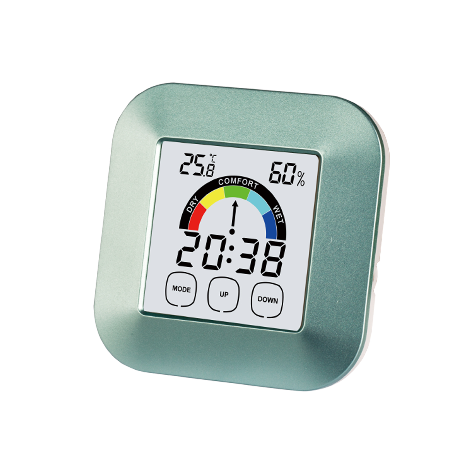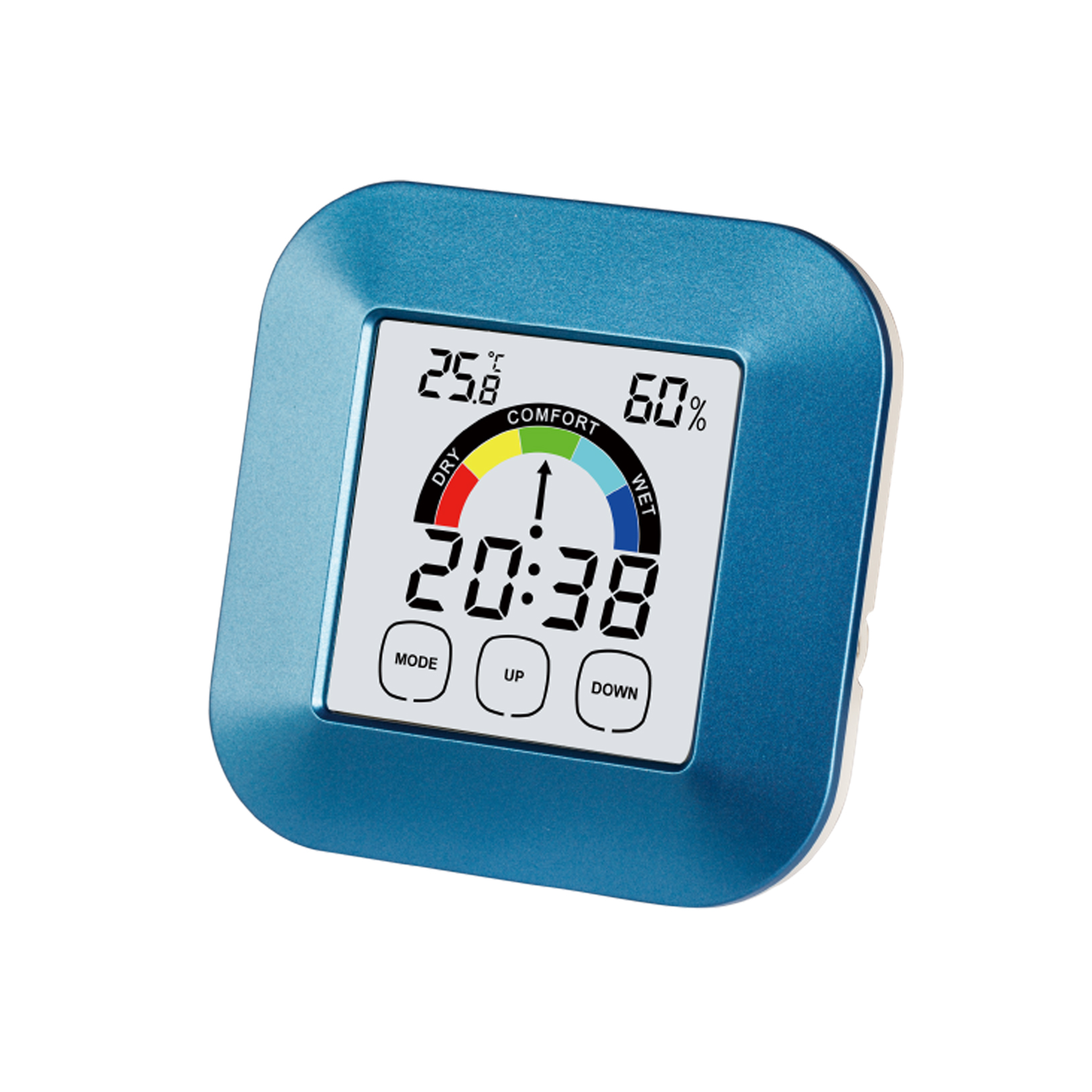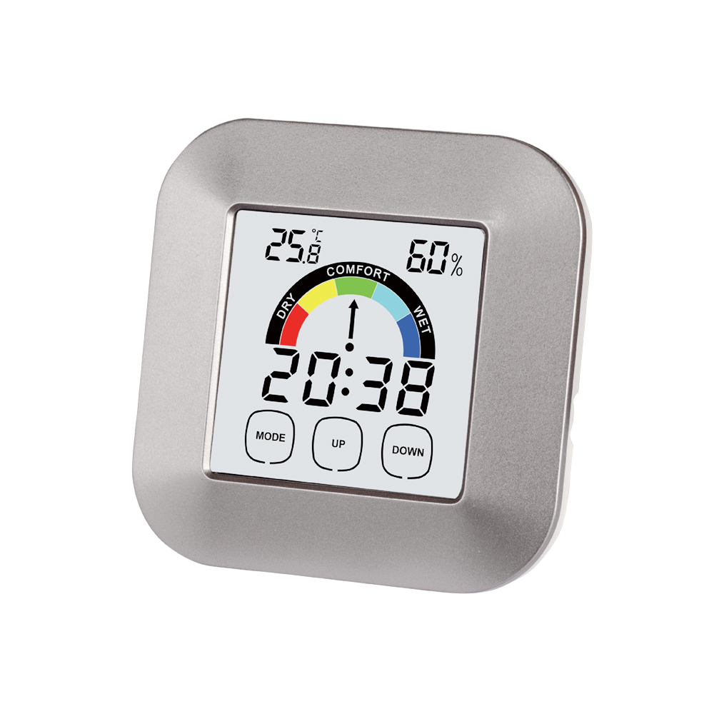Time;Alarm;Temperature;Humidity;Touch button;Backlight;Max/Min;Comfort